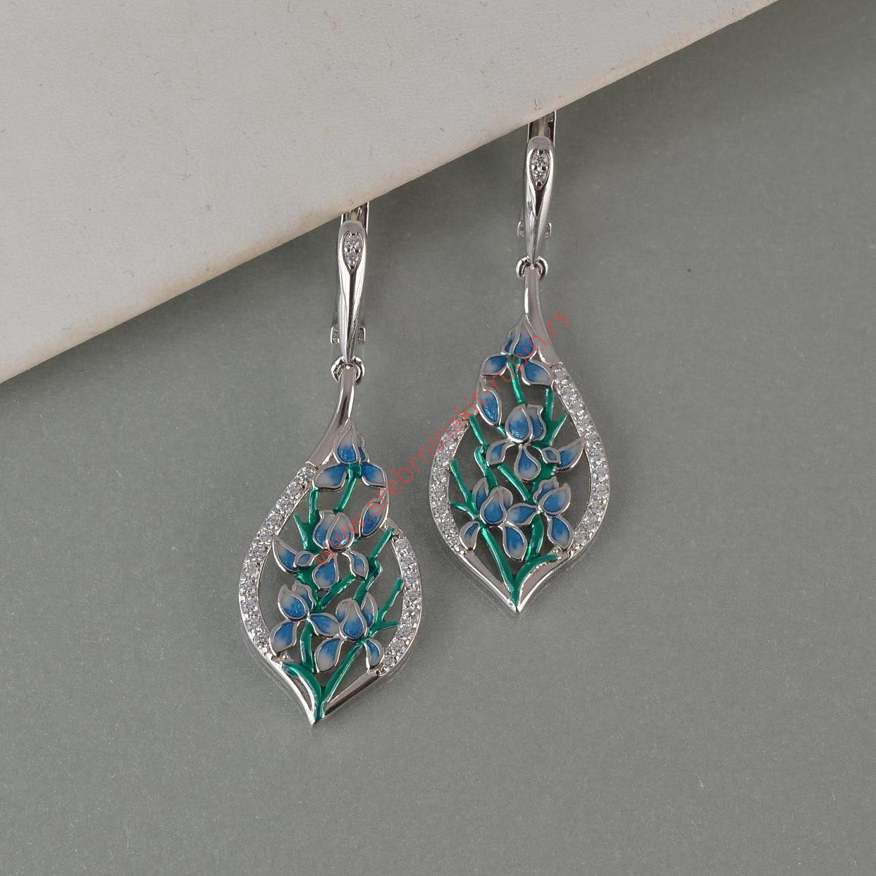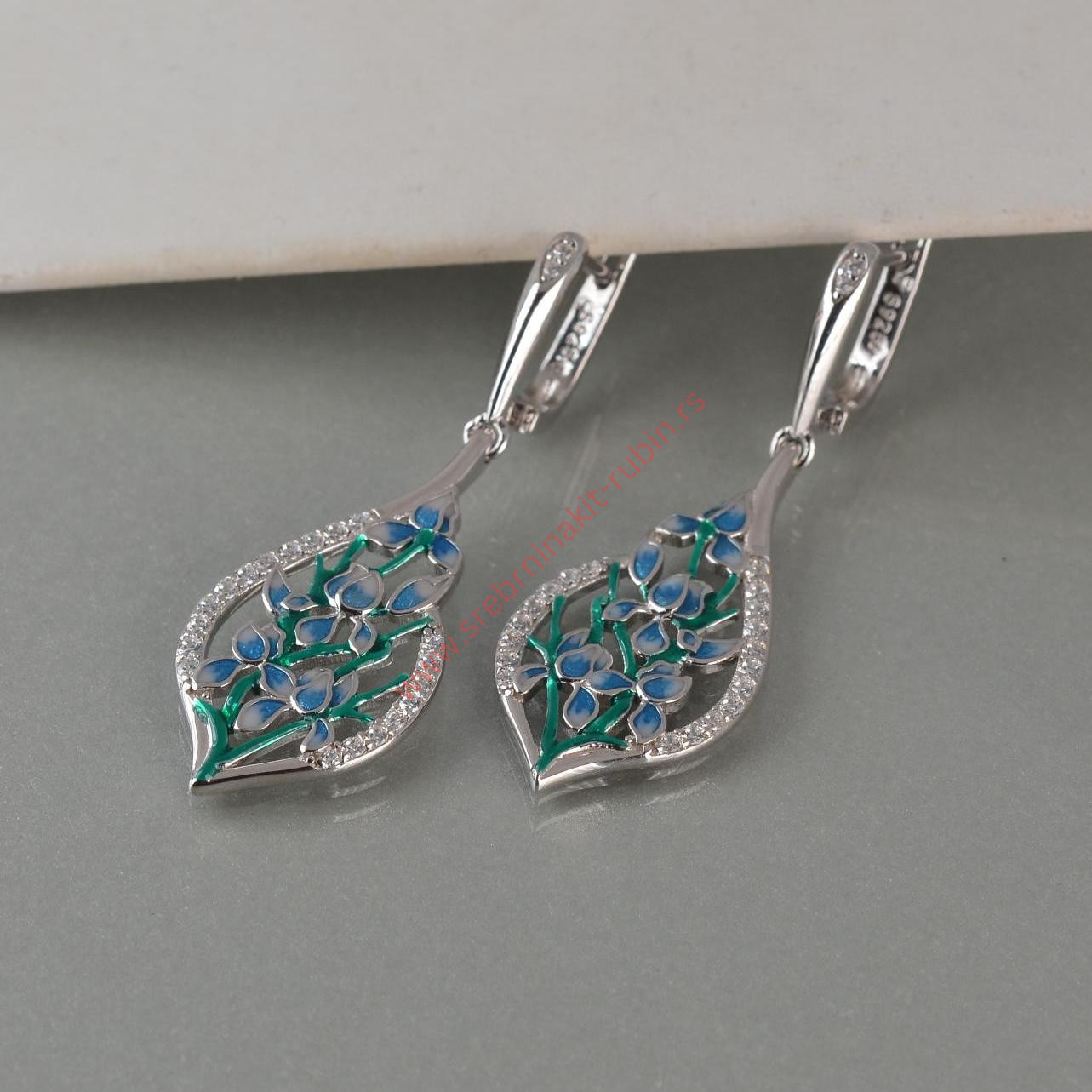 Minđuše cvet sa emajlom i cirkonima – 0195