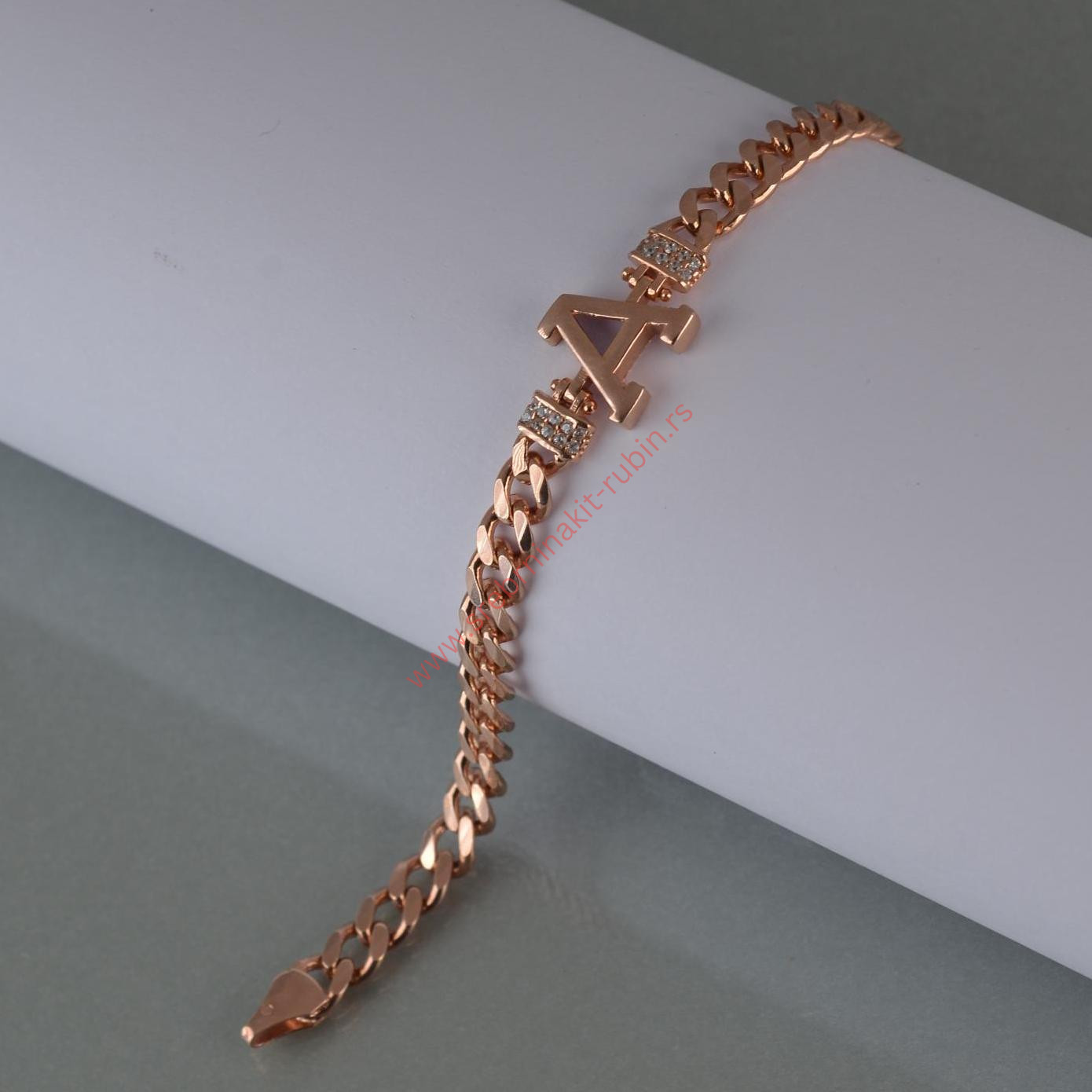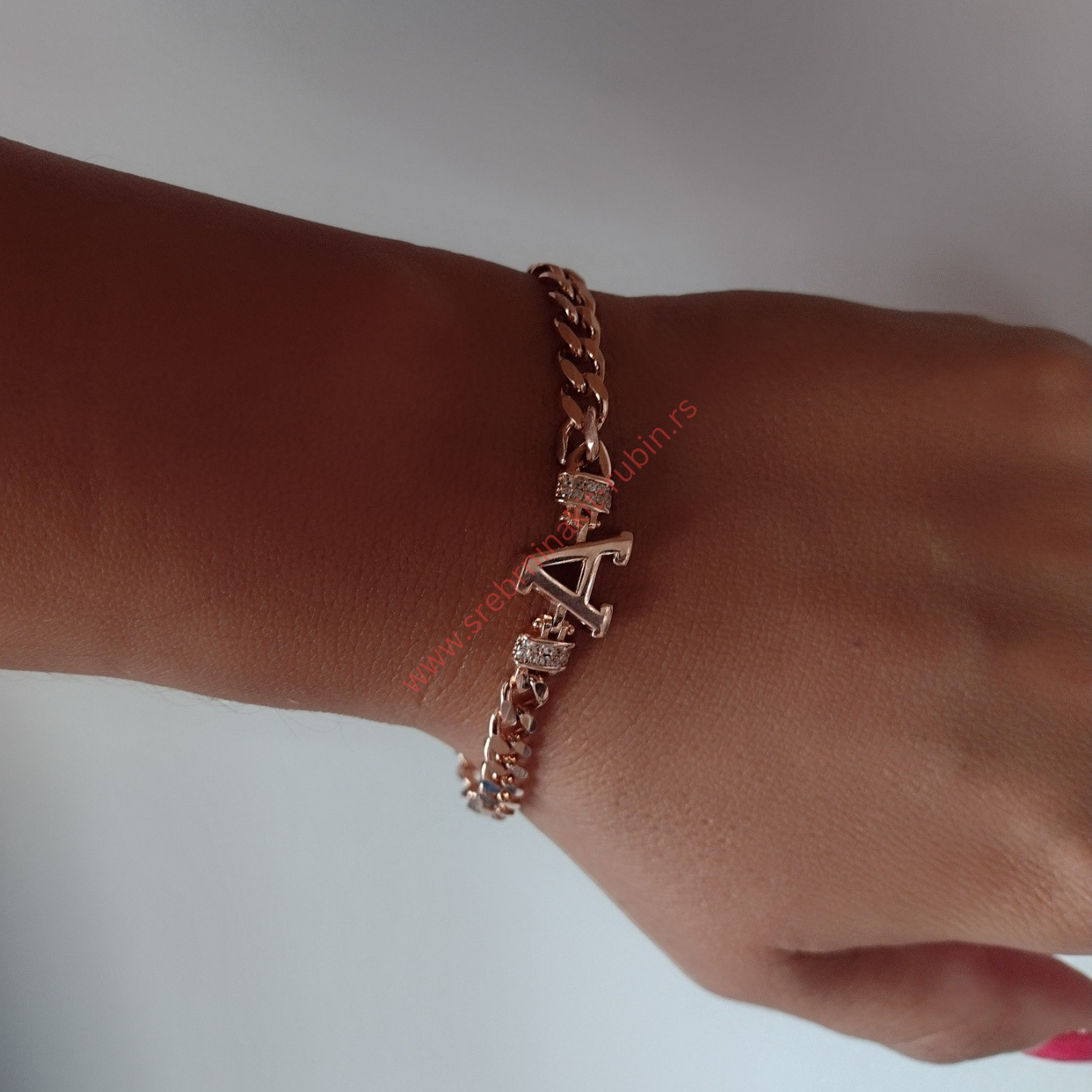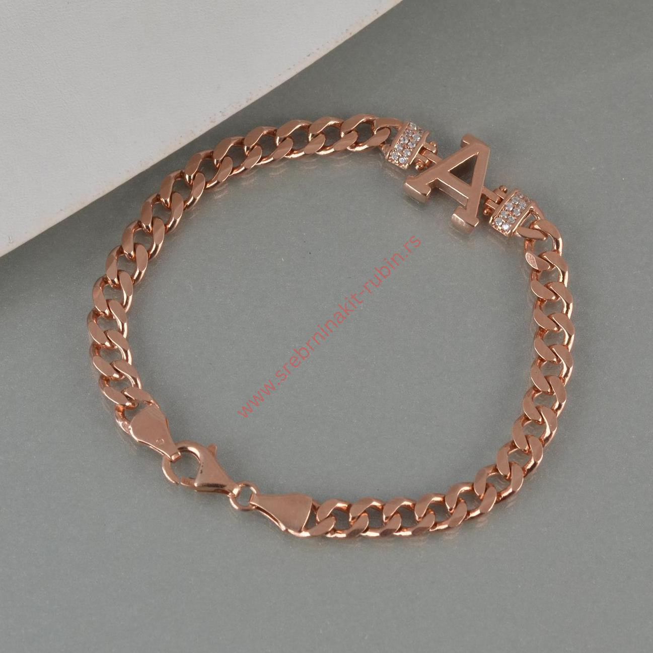 Narukvica pancir slovo A sa cirkonima – 0506
