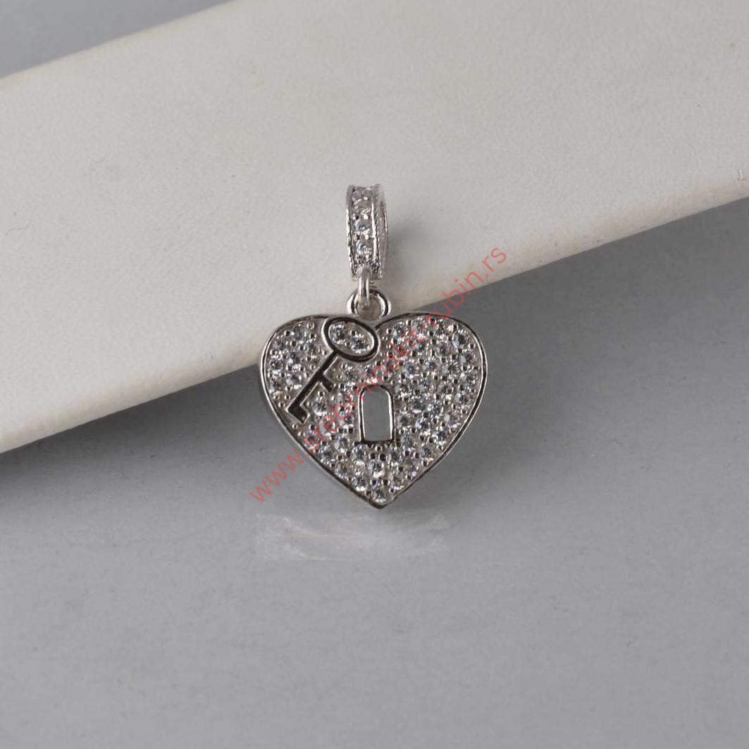 Privezak srce sa cirkonima i ključem – 1020